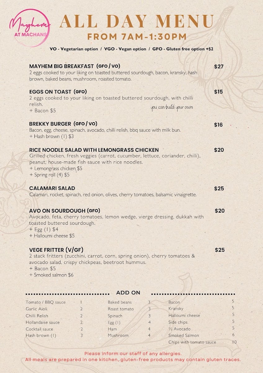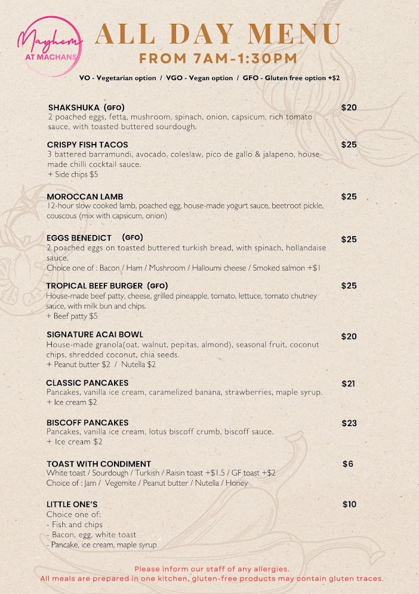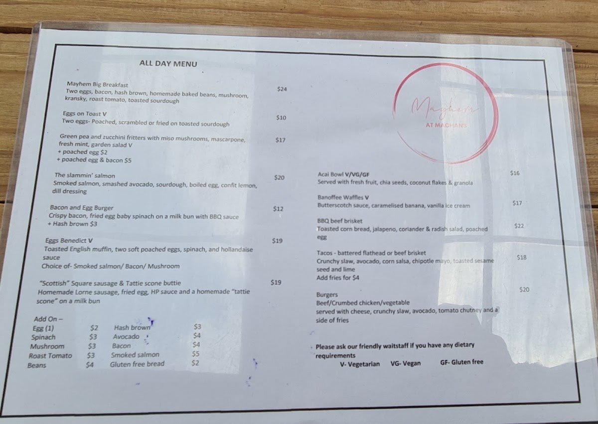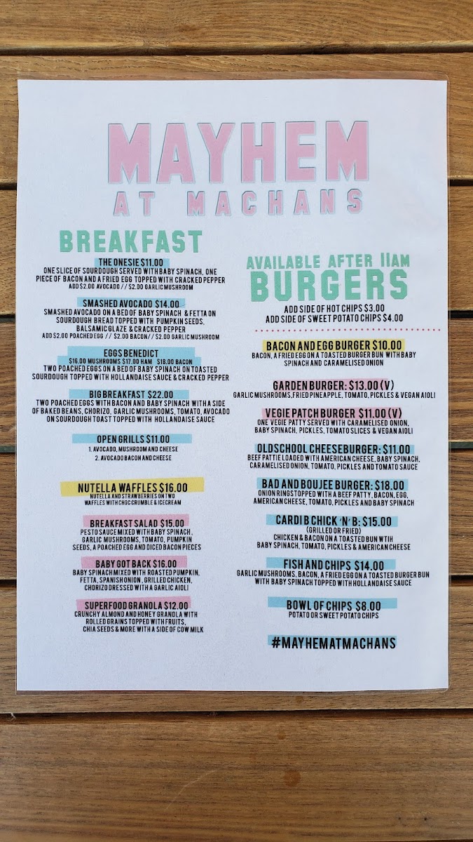 Mayhem At Machans Menu