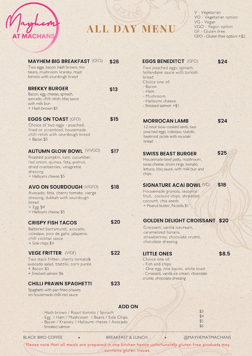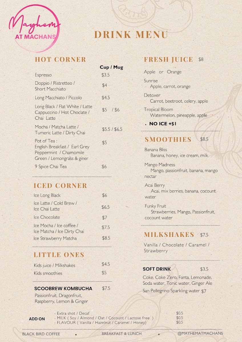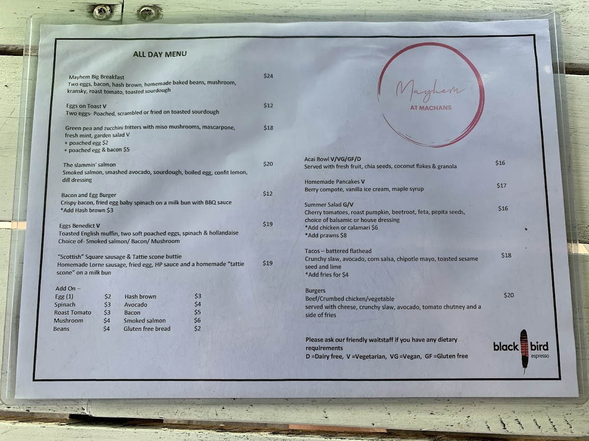 Mayhem At Machans Menu